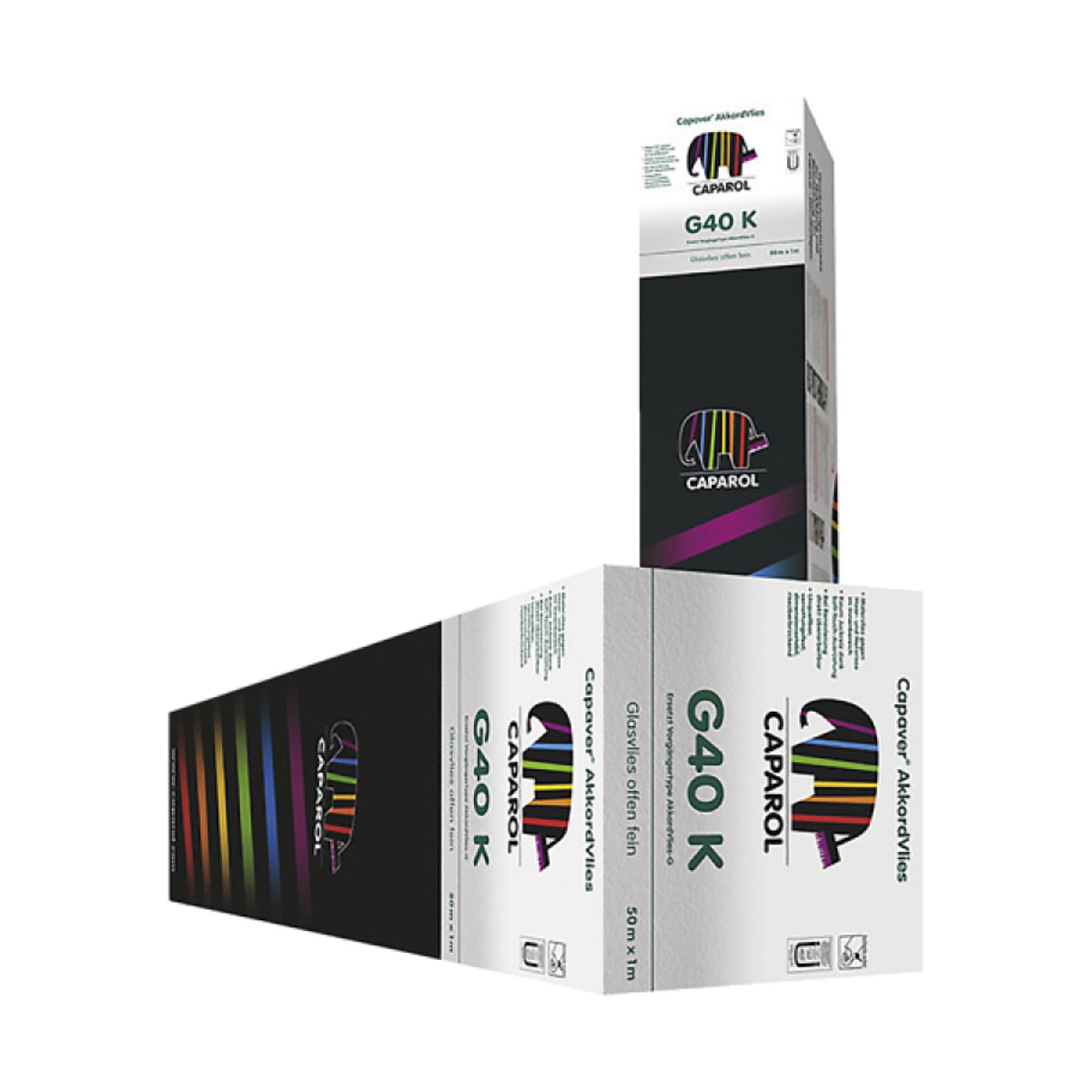 Pielietojums: AkkordVlies G40K ir neapstrādāts, impregnēts stikla šķiedras audums skrāpējumu un tīklveida plaisu pārklāšanai iekšdarbos. Variējot ar dizainu, tipu, krāsu toni, spīduma pakāpi un pārklājuma tehniku, ar Capaver audumiem var iegūt atraktīvas, augstvērtīgas un individuāla dizaina sienu virsmas. Ar atbilstošiem pārklājuma materiāliem pēc vēlmes iespējams vienkārši, ātri un ekonomiski izdevīgi mainīt virsmas optisko izskatu vai pielāgot to jaunām lietošanas prasībām.
