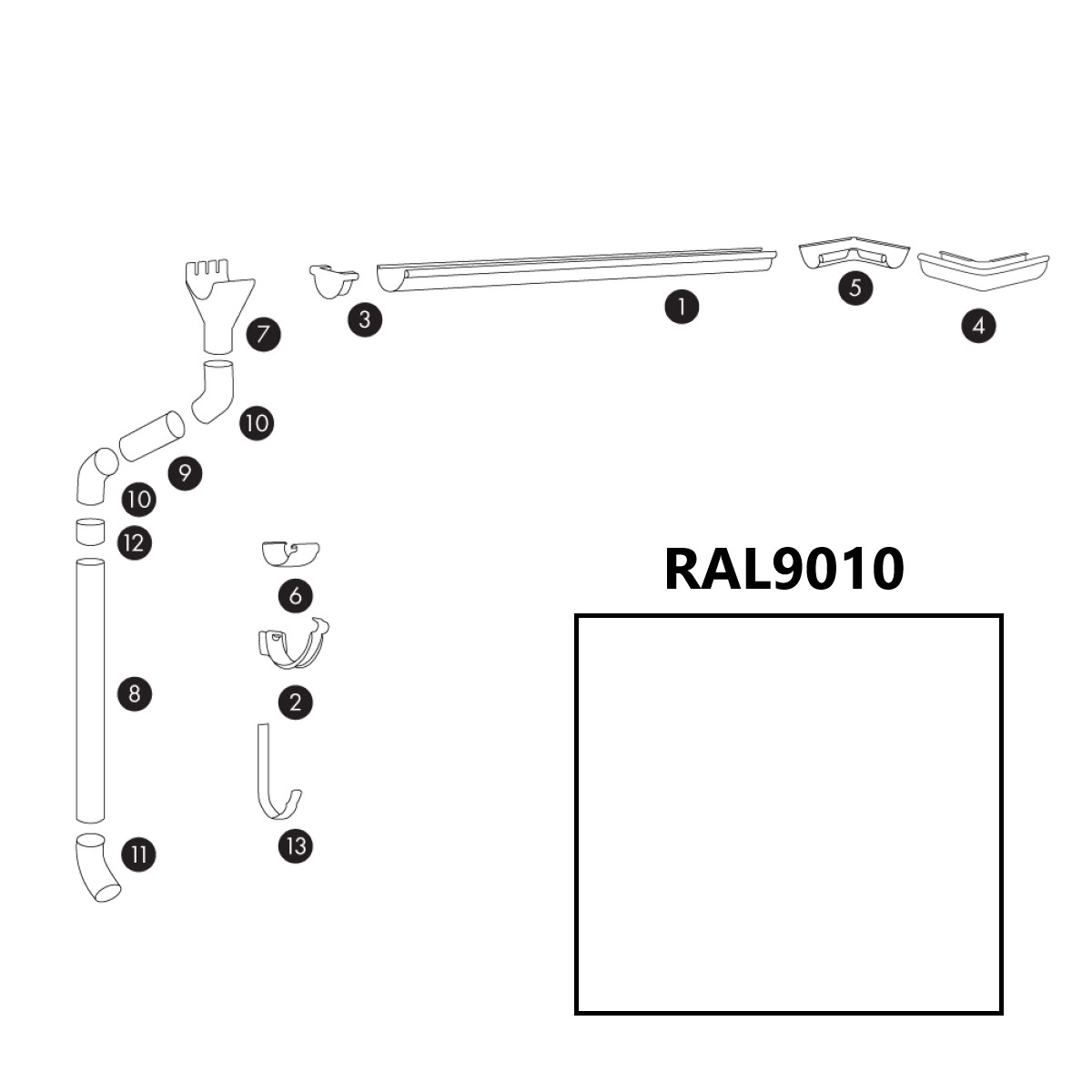 Bud-Masz Tērauda lietus ūdens noteksistēma VT, apaļa, D125mm, RAL9010/balta