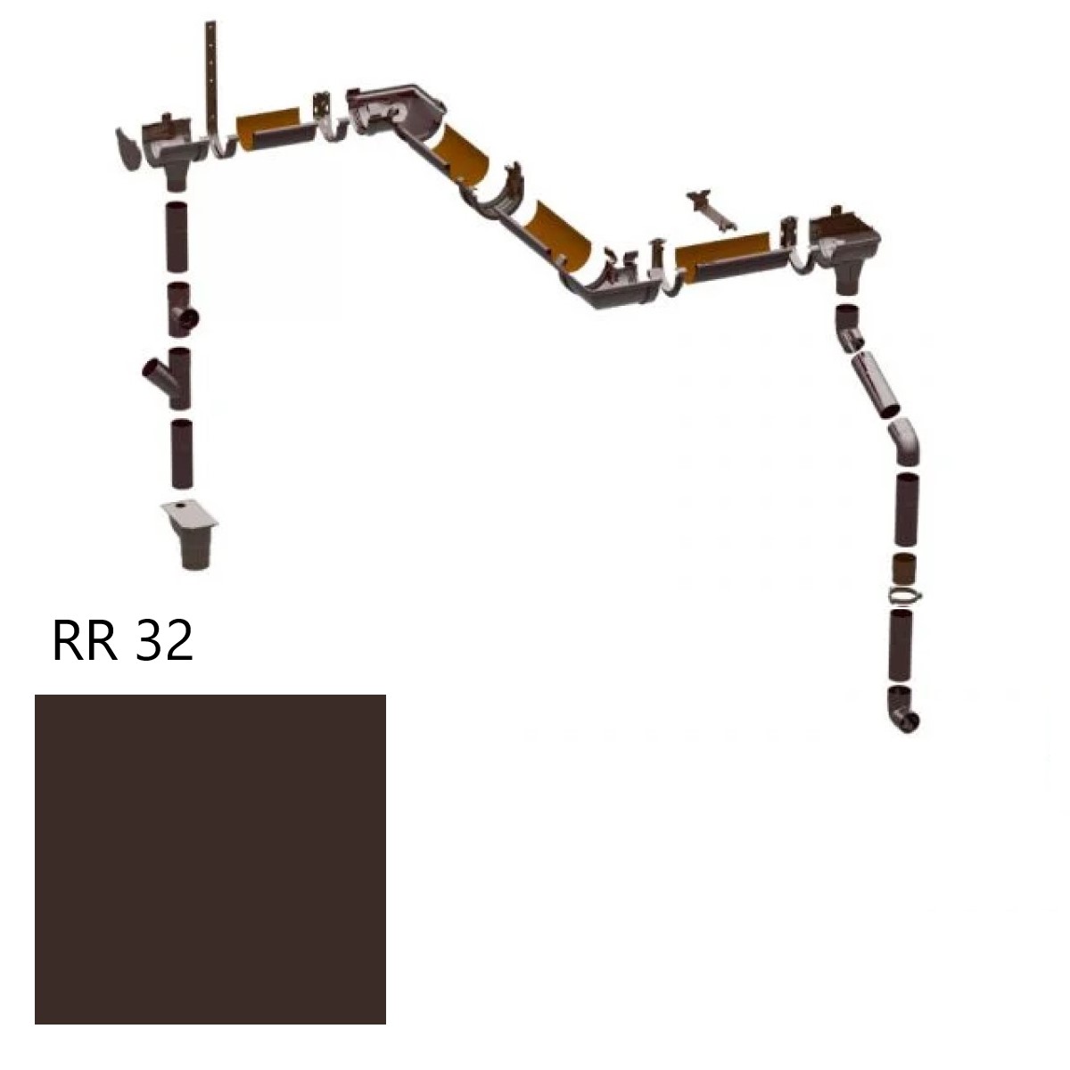 Scala PVC Lietus ūdens noteksistēma, 125/80mm, brūna