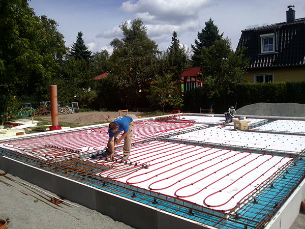 11.Ieklātajam armatūras tīklam klāt tiek piestiprinātas apsildāmās grīdas caurules.